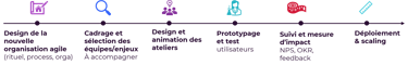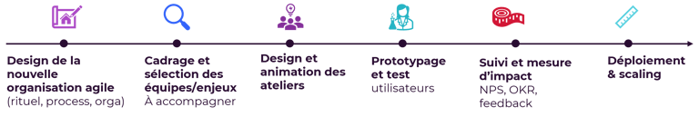 Au début j'avais peur que ça se transforme en usine à gaz, mais l'accompagnement, les ateliers, les rituels nous ont permis de réellement de mieux collaborer et de délivrer plus et mieux à nos clients - Sponsor du projet de transformation