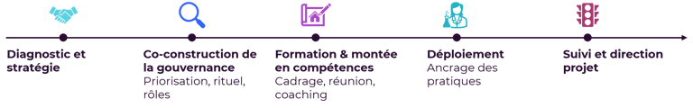 Montée en compétences des chefs de projet : cadrage, animation, agilité.